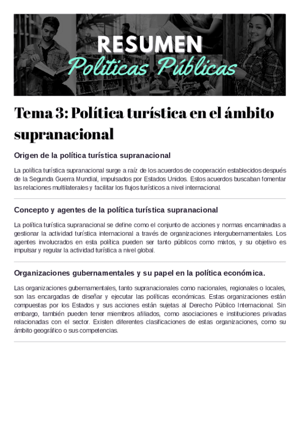 He publicado nuevos apuntes de 3º Politicas Publicas en el Sector Turistico: temario políticas públicas