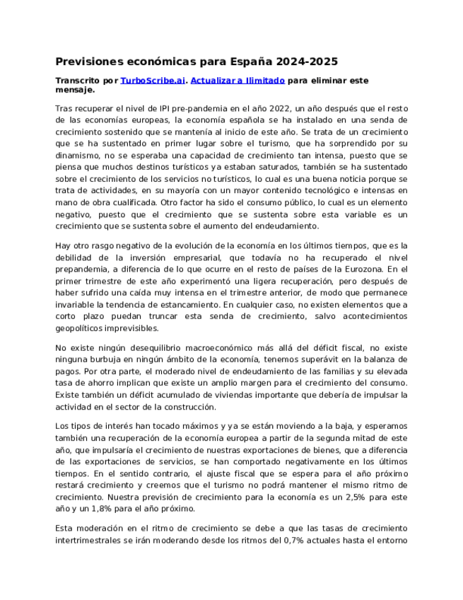 He publicado nuevos apuntes de 3º Politicas Publicas en el Sector Turistico: Previsiones-economicas-para-Espana-2024-2025.pdf
