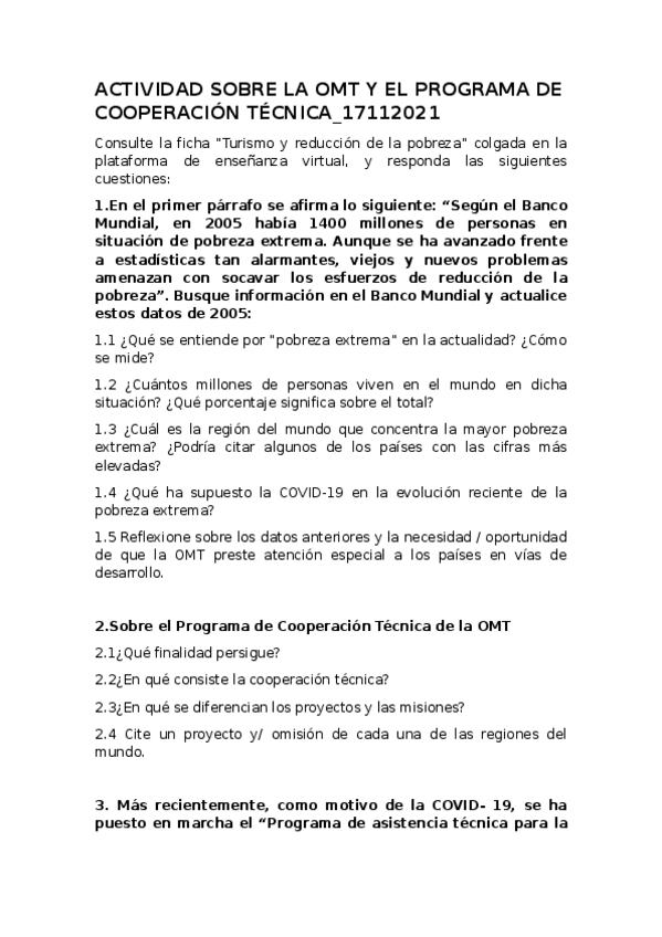 Práctica OMT y Programa de Cooperación Técnica