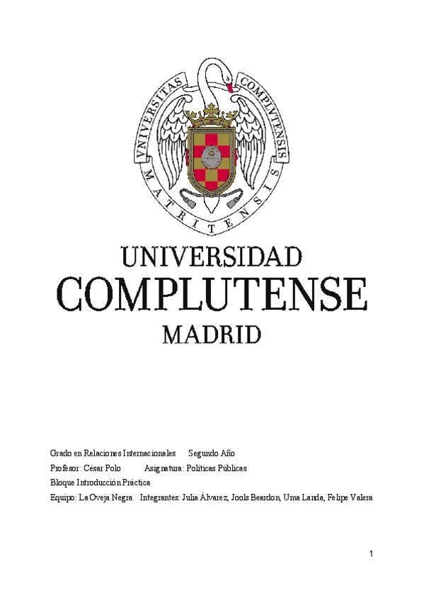 Temario de la asignatura de Políticas Públicas de 2º curso de RRII en la UCM.