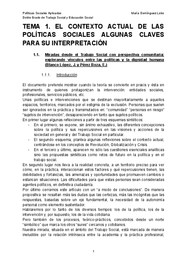 Tema 1 Politicas sociales aplicadas
