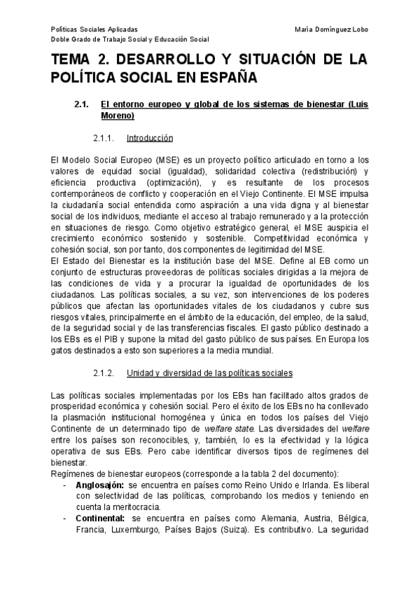 Tema 2 Politicas sociales aplicadas