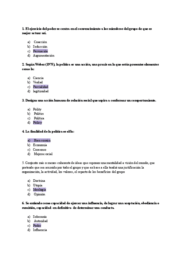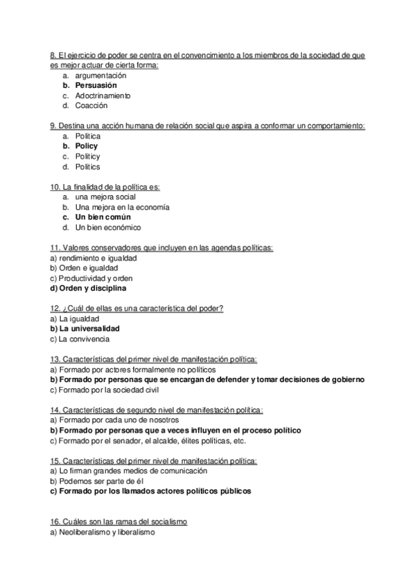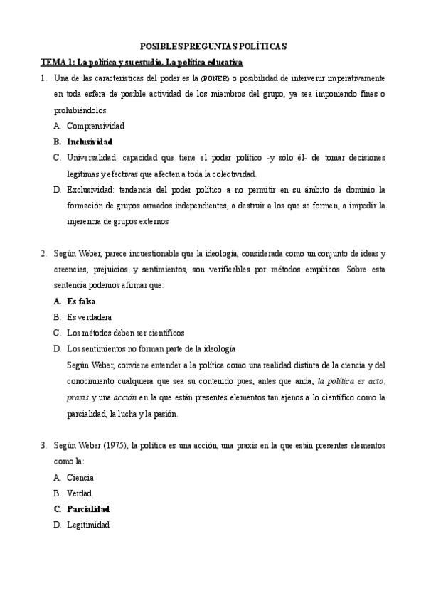 TODAS LAS PREGUNTAS de Política
