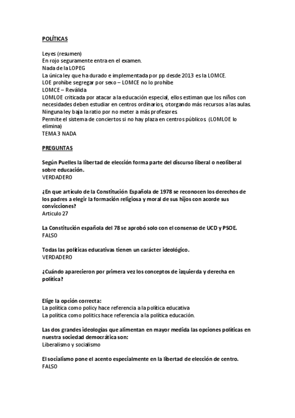 He publicado nuevos apuntes de 2º Políticas y Reformas educativas: TODAS LAS PREGUNTAS de Política
