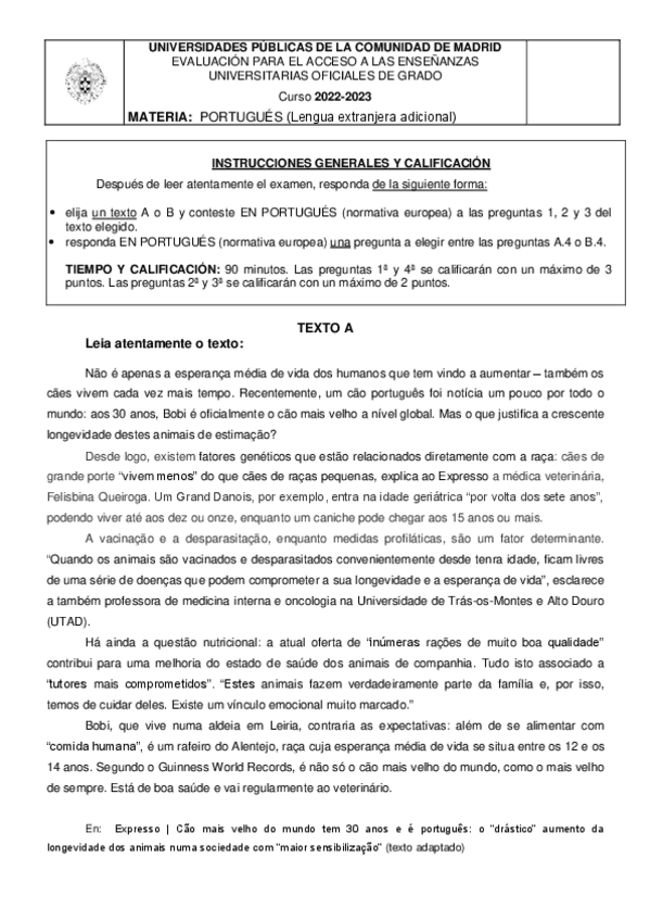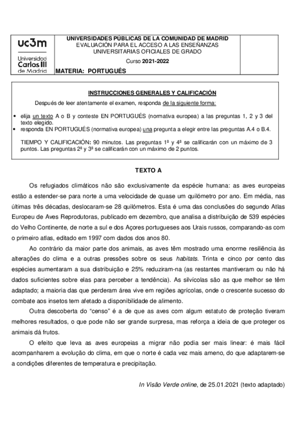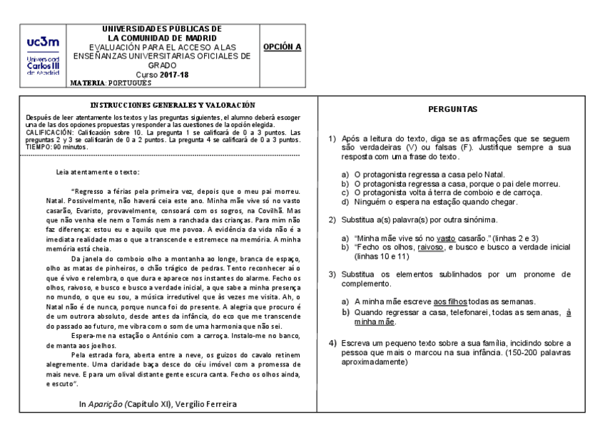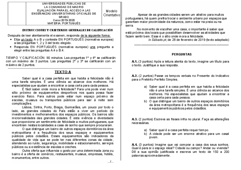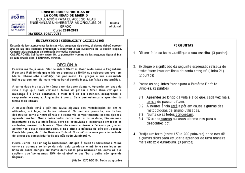 Examen EBAU Portugués