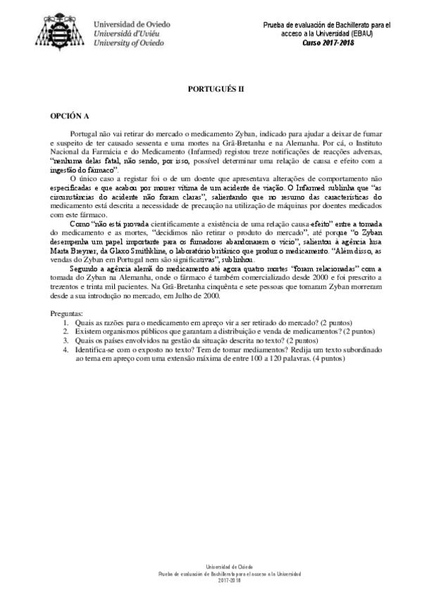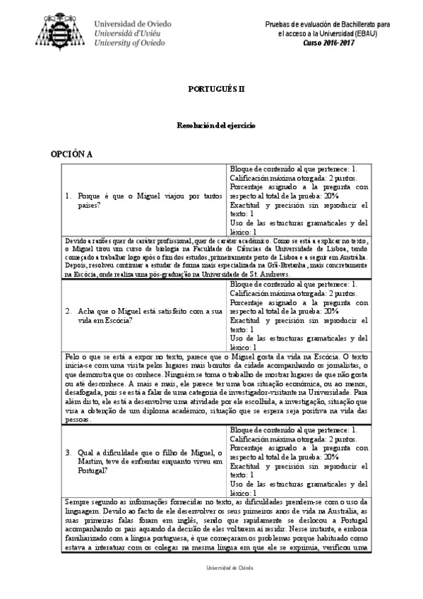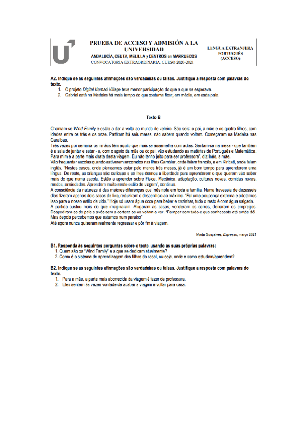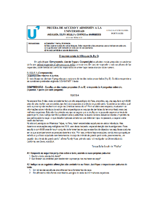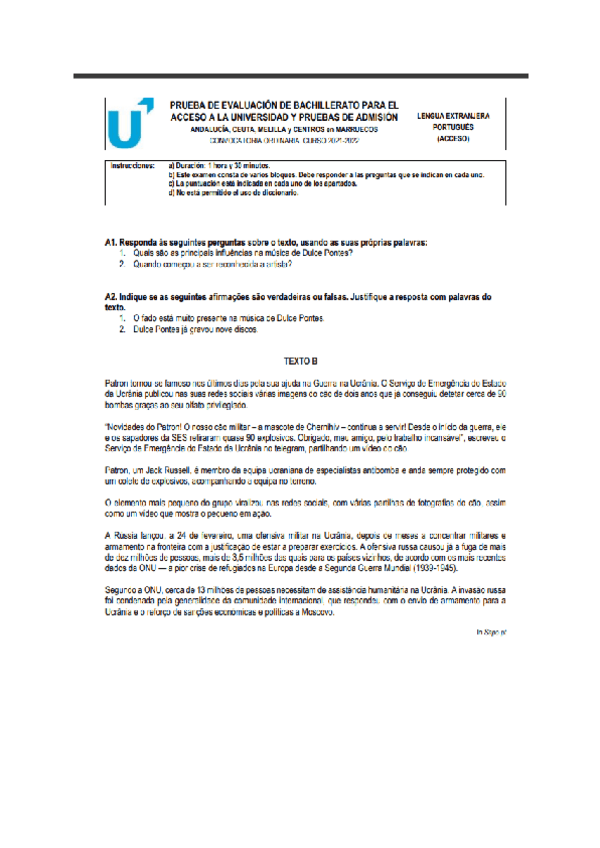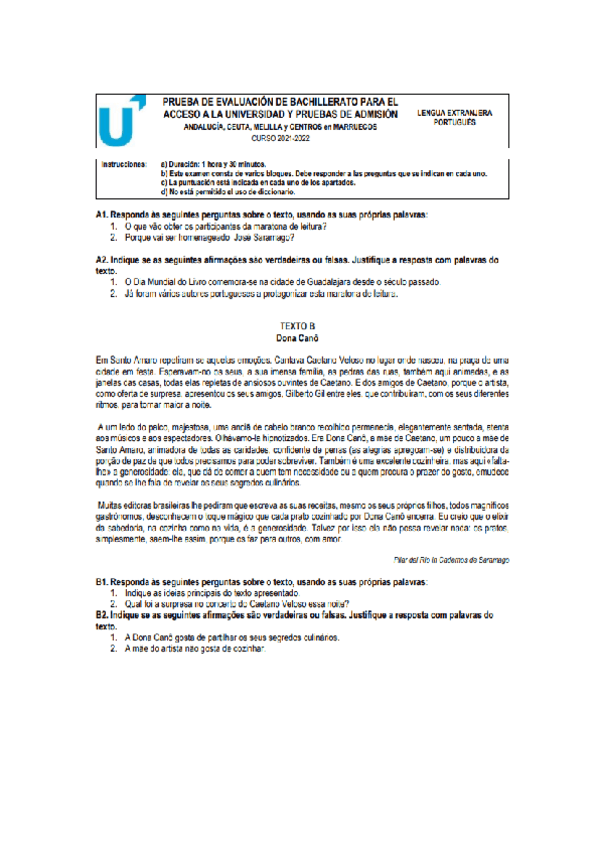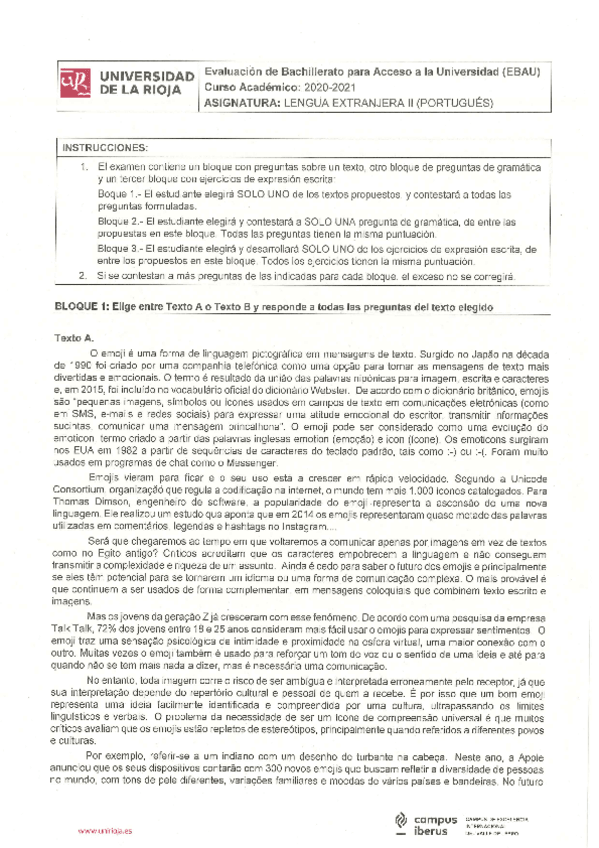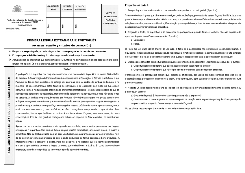 Examen EBAU Portugués