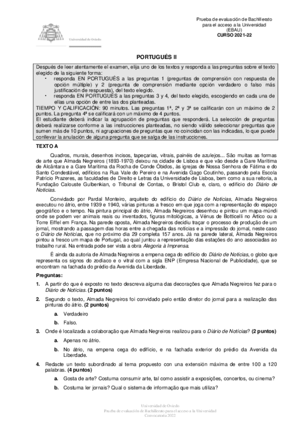 Examen EBAU Portugués