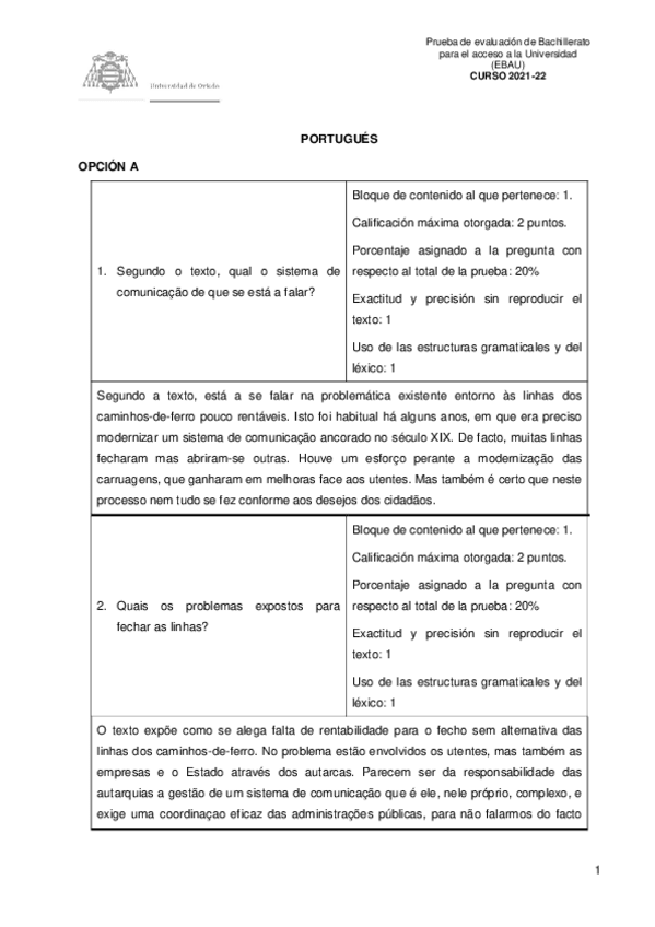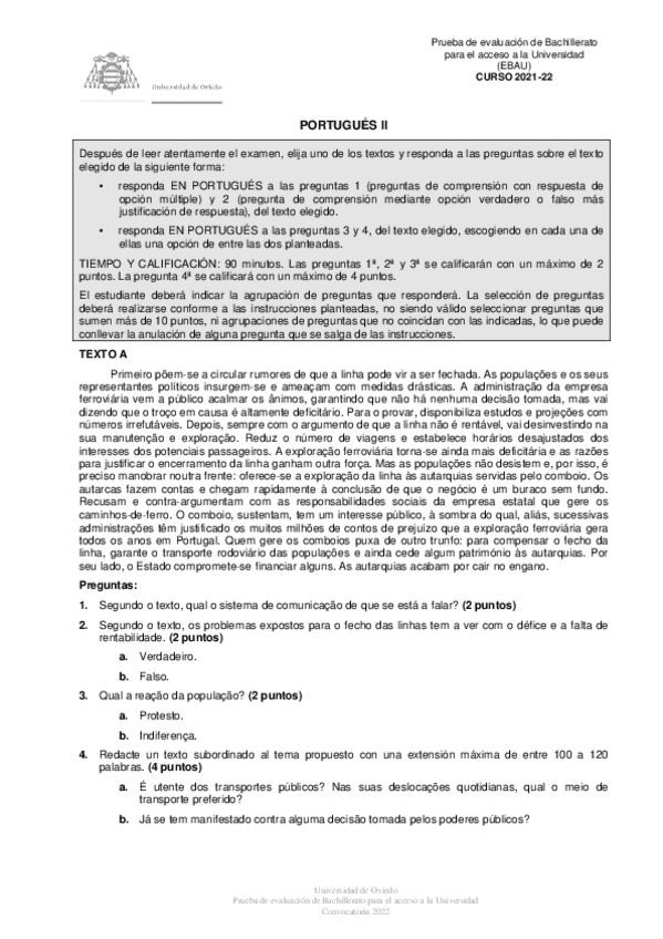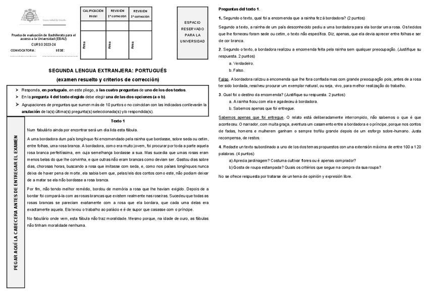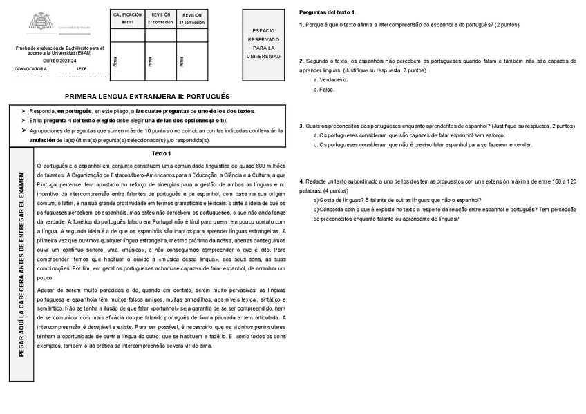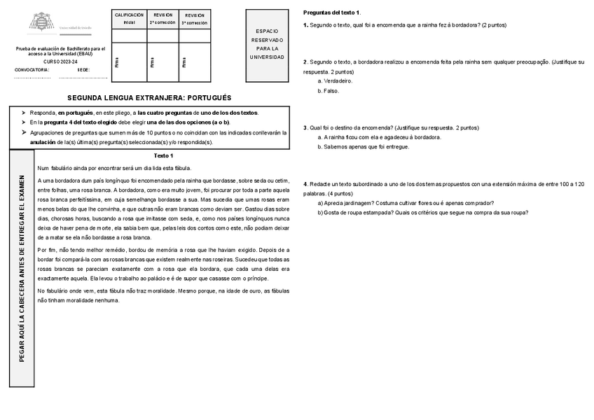 Examen EBAU Portugués