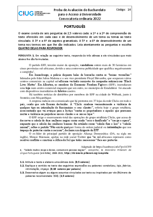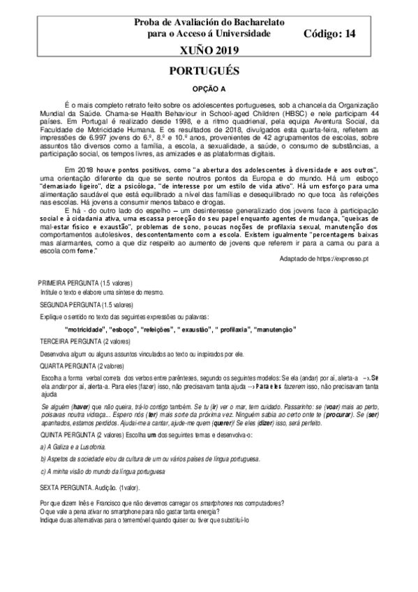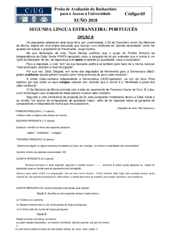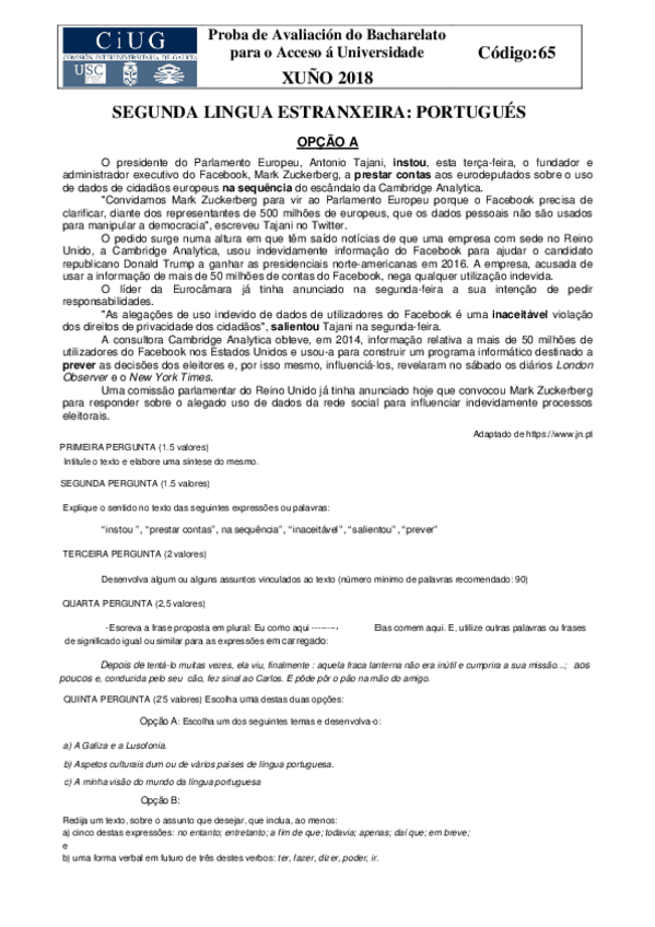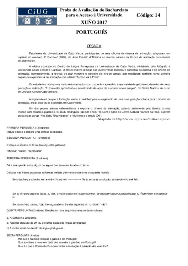 selectividad portugués 2017-2018