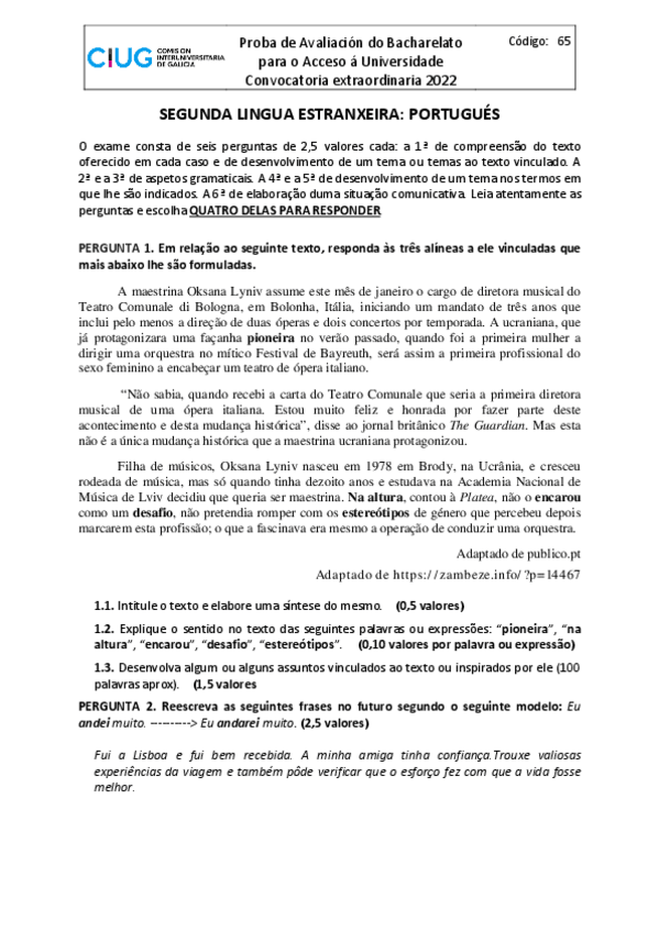 Exámenes y Portugués ABAU Galicia 2022