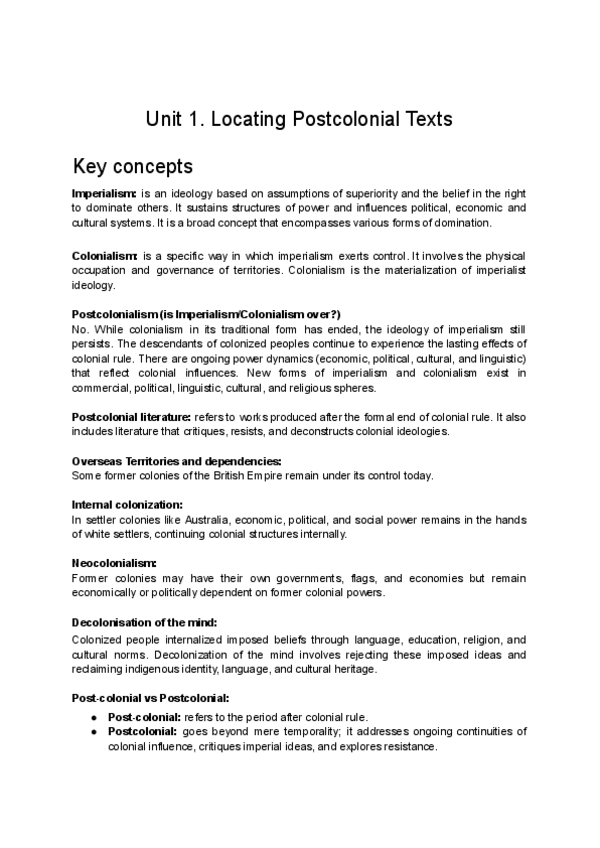 Postcolonial Literature midterms apuntes