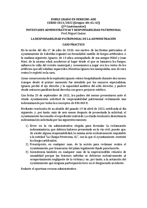 He publicado nuevos practicas de 3º Potestades administrativas y responsabilidad patrimonial: recursos (casos prácticos)