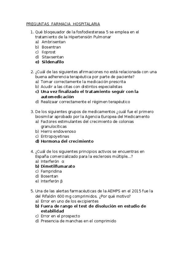 He publicado nuevos apuntes de 5º Practicas Tuteladas: PREGUNTAS FARMACIA HOSPITALARIA.docx