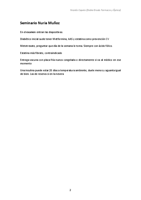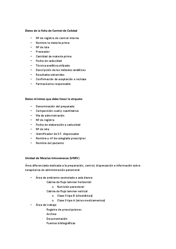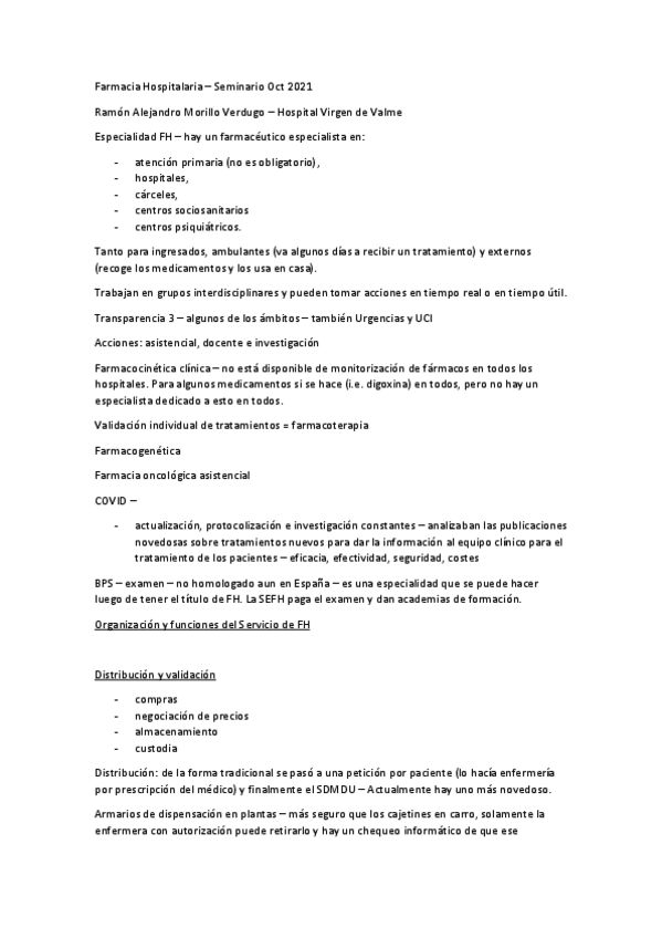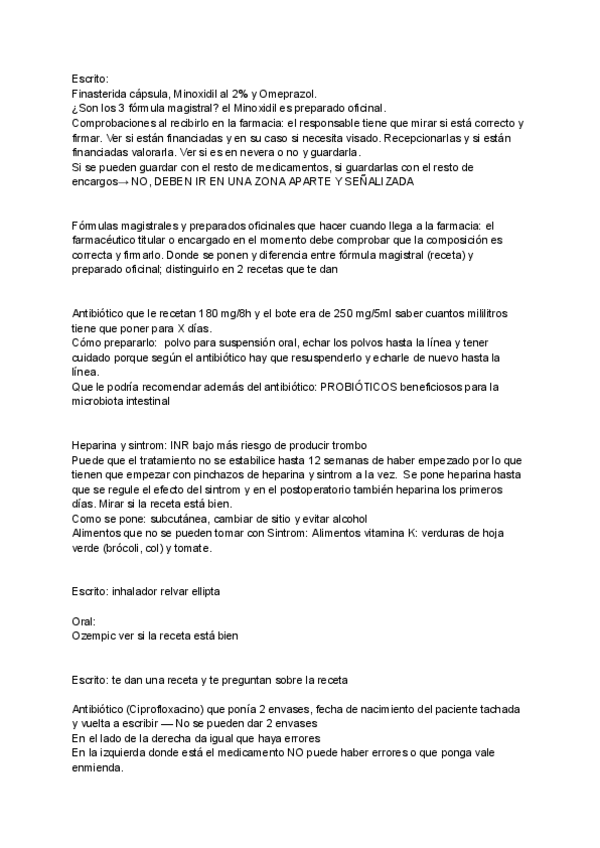 Parte de Farmacia hospitalaria, preguntas que dijo Ramón en seminarios que eran importantes para examen