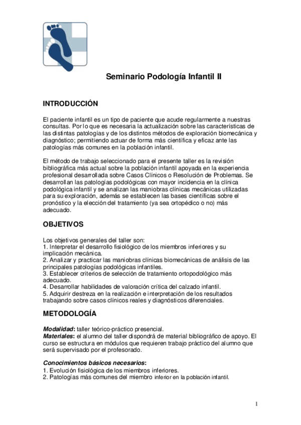 He publicado nuevos apuntes de 2º PRÁCTICUM PODOLÓGICO I: seminario-1-quiro.pdf