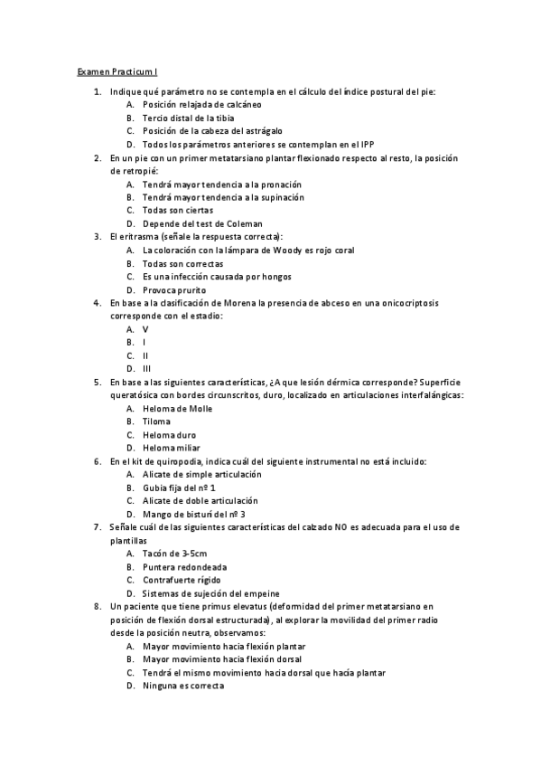 He publicado nuevos examenes de 2º PRÁCTICUM PODOLÓGICO I: Examen-Practicum-I.pdf