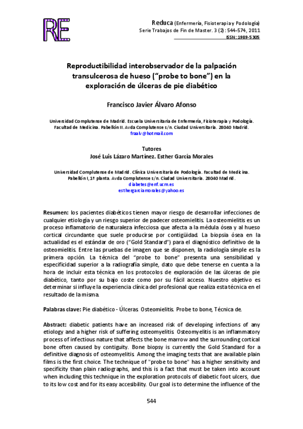 He publicado nuevos apuntes de 3º PRÁCTICUM PODOLÓGICO II: Reproductibilidad-interobservados-de-la-palpacion-trasulcerosa-de-huesi-probe-to-bone-en-la-exploracion-de-ulceras-de-pie-diabetico.pdf
