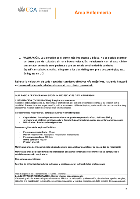 Caso práctico y diario UCI HUVR