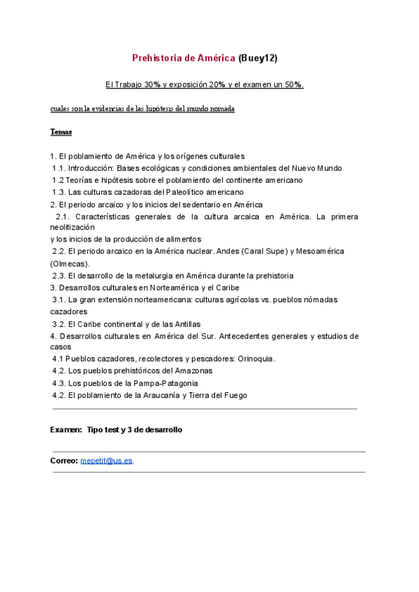 Alguien sabe que suele caer en los exámenes de María Eugenia en Prehistoria de América?