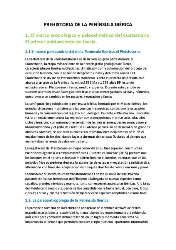 Apuntes Prehistoria de la península - Completo