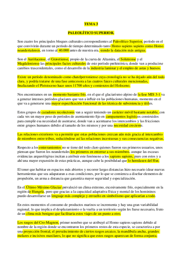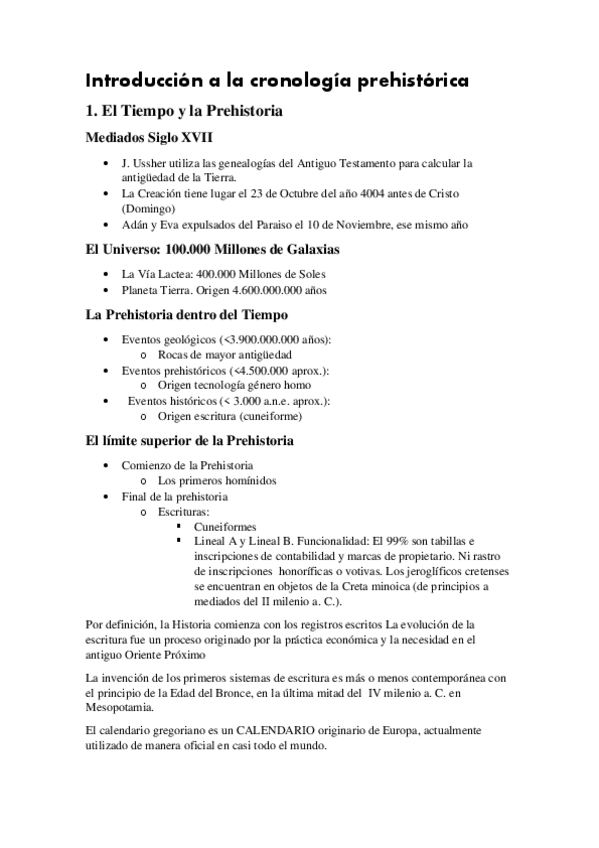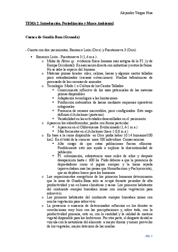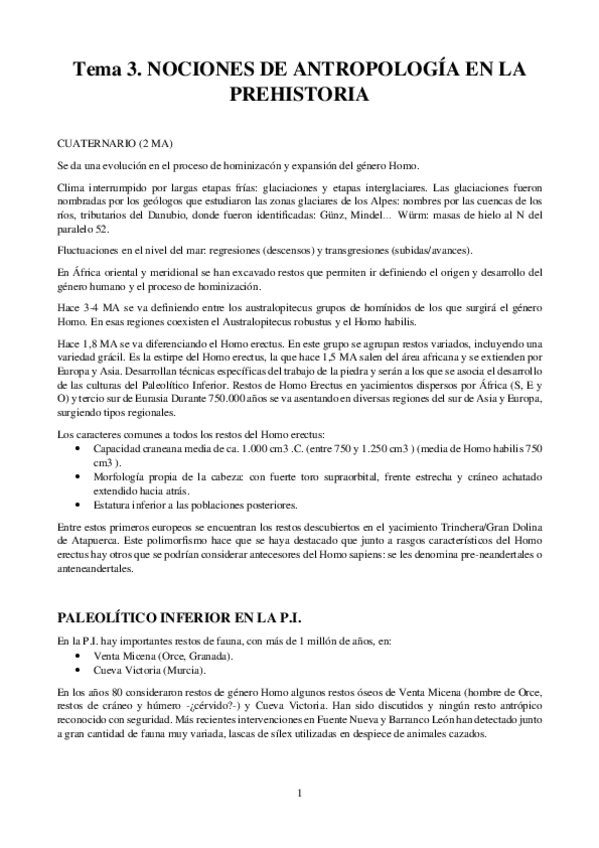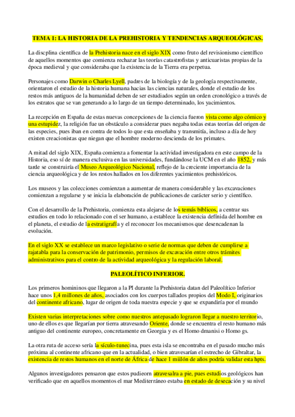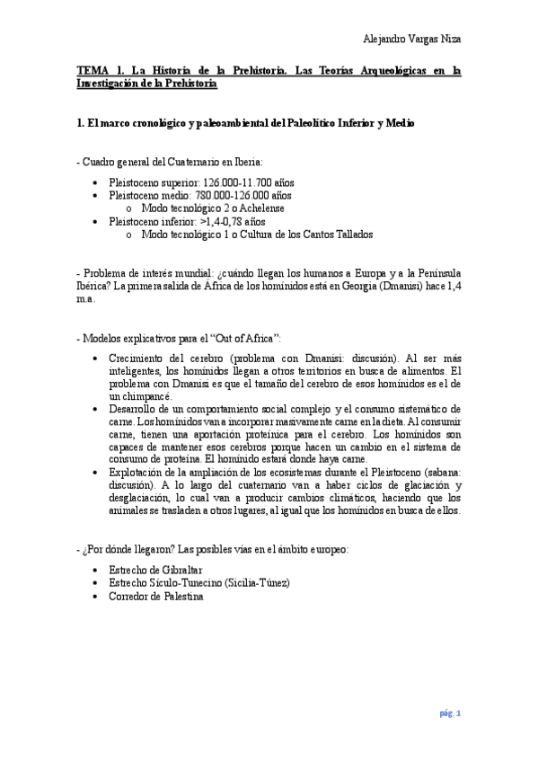 Tema 1 de la asignatura de Prehistoria de la P.I. del prof. Mark Hunt, ordenado por puntos y con errores corregidos.