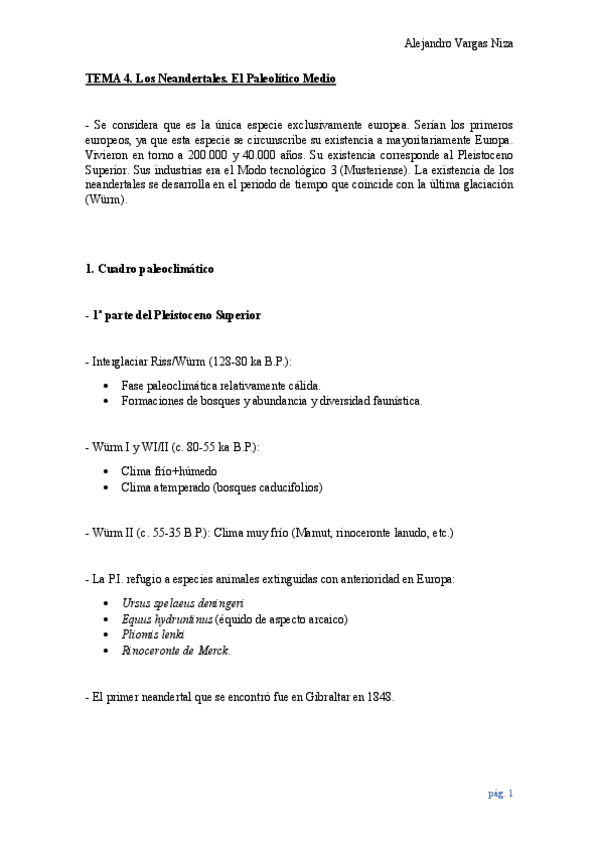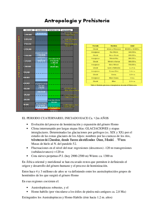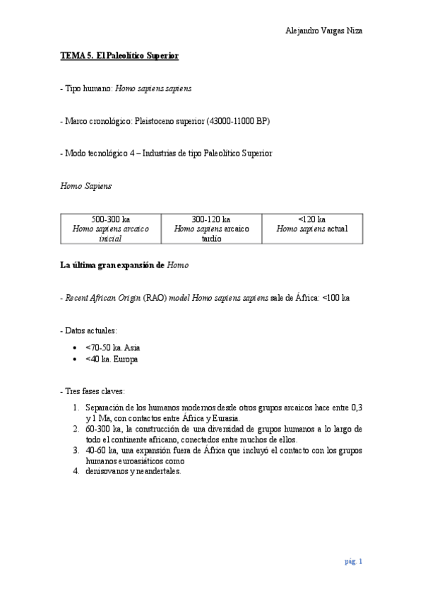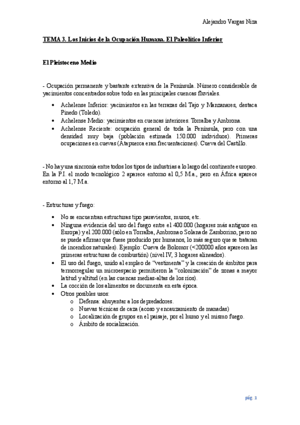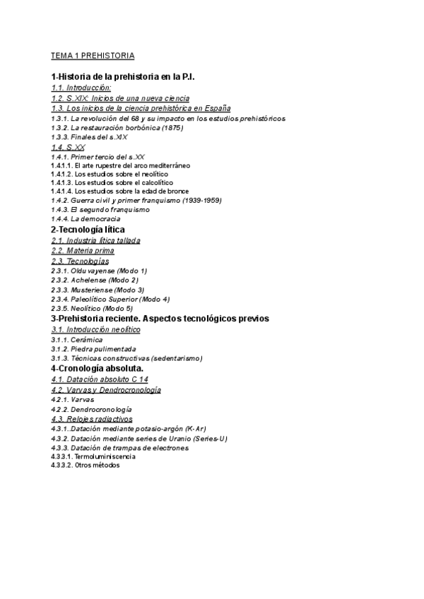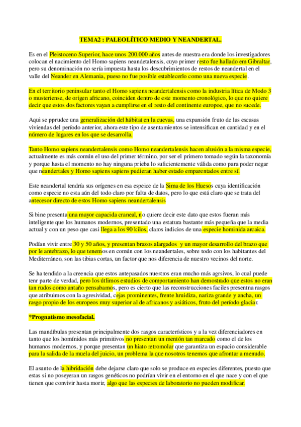 Tema 1 de la asignatura de Prehistoria de la P.I. del prof. Mark Hunt, ordenado por puntos y con errores corregidos.