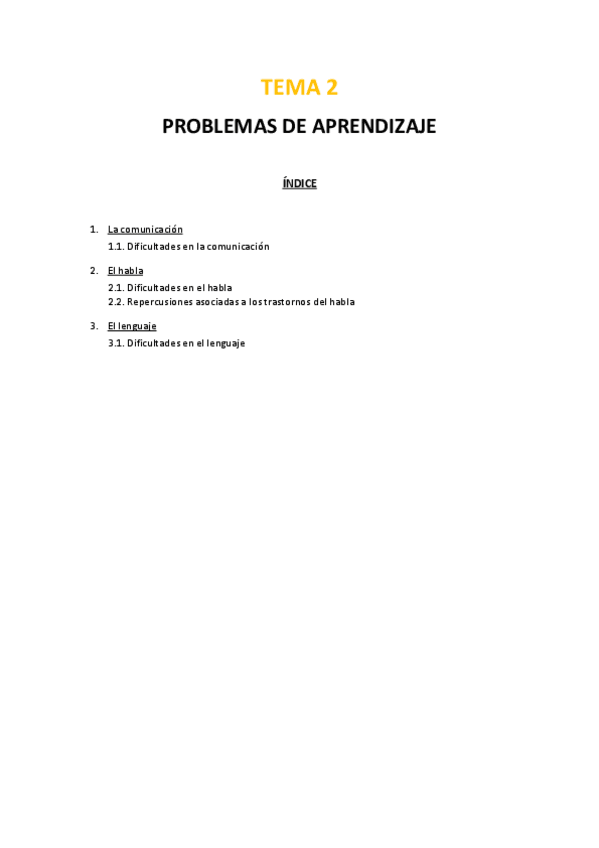 TEMA 2 ASIGNATURA DE PREVENCIÓN DE LAS DIFICULTADES ( DIFICULTADES COMUNICATIVAS, DEL LENGUAJE, DEL HABLA)
