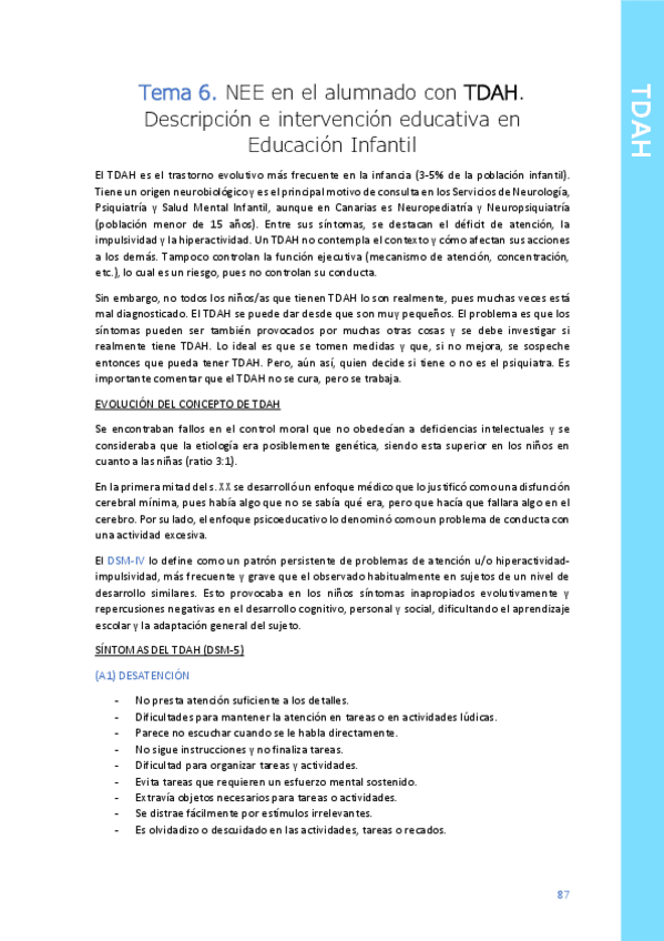 He publicado nuevos apuntes de 2º Prevención e intervención en las dificultades de aprendizaje y trastornos del desarrollo: Tema-6-TDAH.pdf