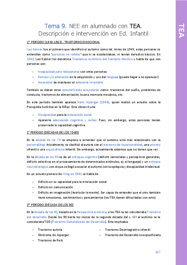 He publicado nuevos apuntes de 2º Prevención e intervención en las dificultades de aprendizaje y trastornos del desarrollo: Tema-9-TEA.pdf
