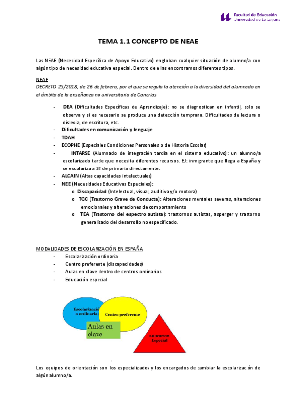 He publicado nuevos apuntes de 2º Prevención e intervención en las dificultades de aprendizaje y trastornos del desarrollo: Tema-1-NEAE.pdf