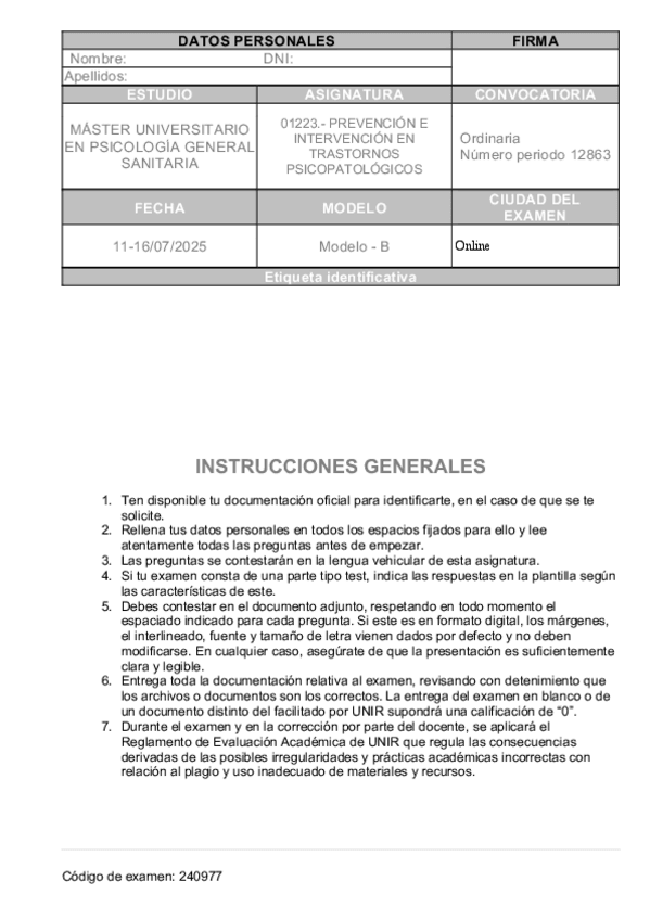 He publicado nuevos examenes de 1º Prevención e Intervención en Trastornos Psicopatológicos: ex-prevencion-julio-2025.pdf