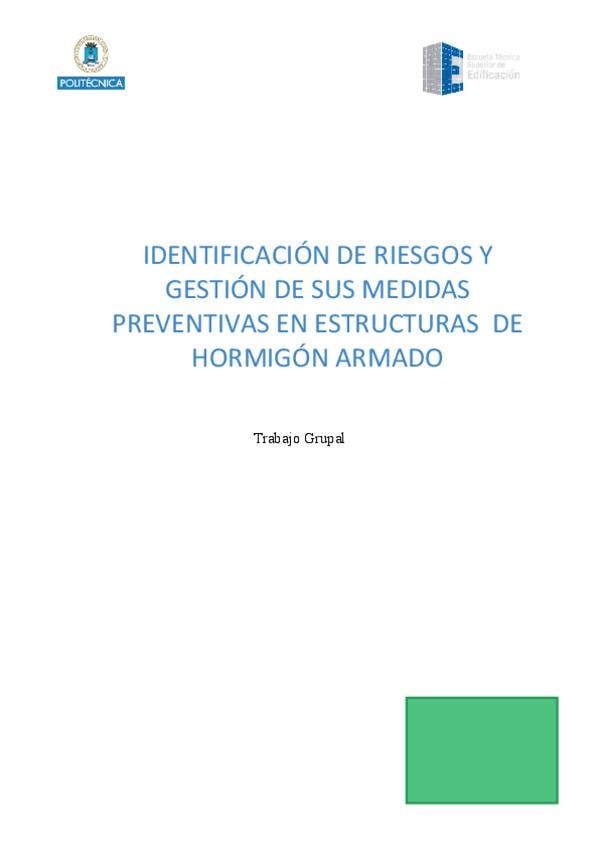 Identificación de riesgos y gestión de sus medidas preventivas: Estructuras de hormigón armado