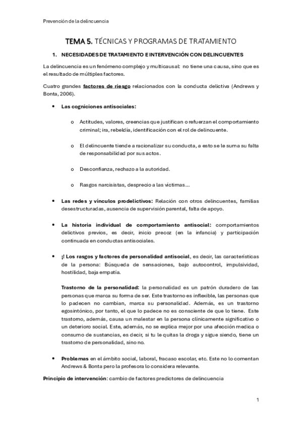 PREVENCIÓN Y TRATAMIENTO DE LA DELINCUENCIA. Apuntes completos