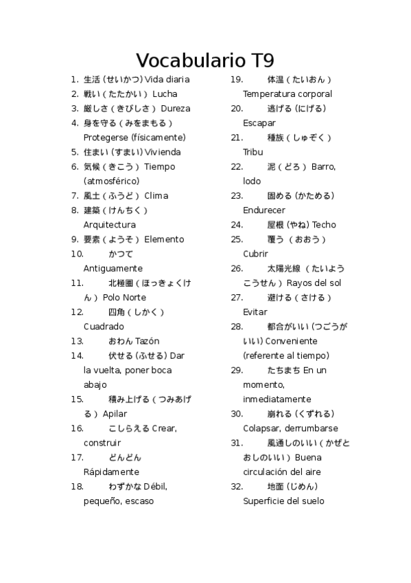He publicado nuevos apuntes de 4º Primera Lengua Asiática: Japonés Vii: Vocabulario-T9.odt