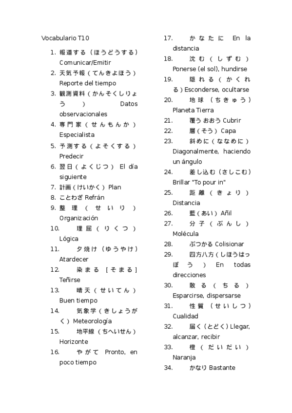 He publicado nuevos apuntes de 4º Primera Lengua Asiática: Japonés Vii: Vocabulario-T10.docx