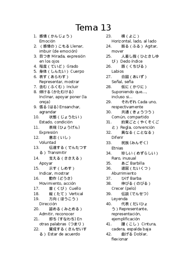 He publicado nuevos apuntes de 4º Primera Lengua Asiática: Japonés Vii: Vocabulario-T13.docx