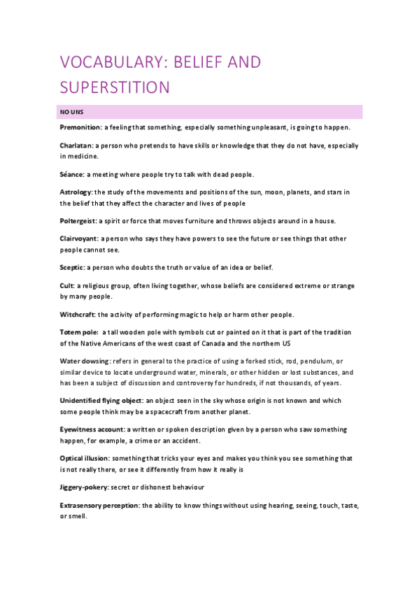 He publicado nuevos apuntes de 1º Primera Lengua Extranjera I: Inglés: Vocabulary-belief-and.pdf