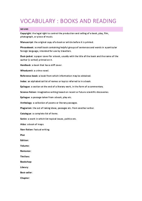 He publicado nuevos apuntes de 1º Primera Lengua Extranjera I: Inglés: VOCABULARY-books-and-reading.pdf