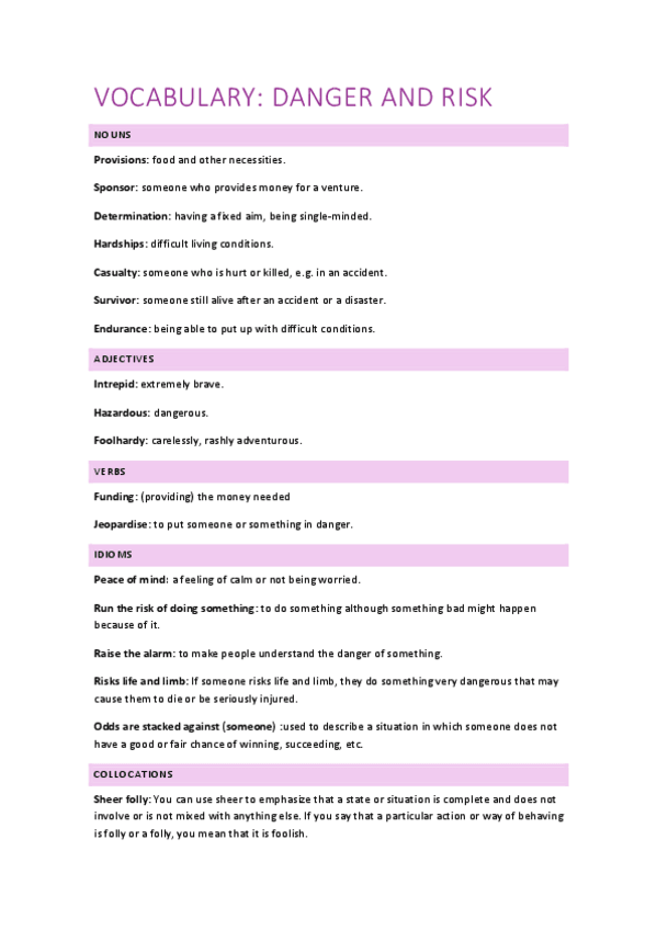He publicado nuevos apuntes de 1º Primera Lengua Extranjera I: Inglés: Vocabulary-danger-and-risk.pdf