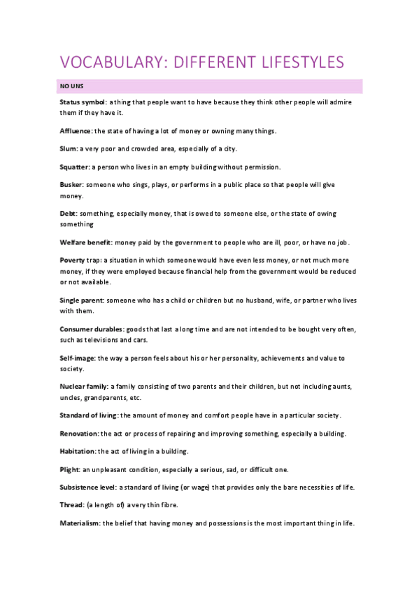 He publicado nuevos apuntes de 1º Primera Lengua Extranjera I: Inglés: Vocabulary-different-lifestyles.pdf