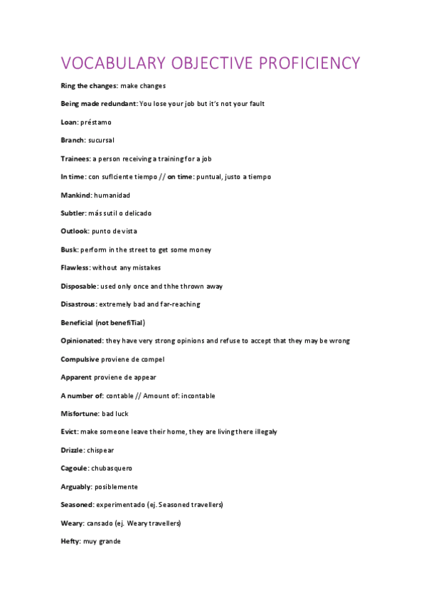 He publicado nuevos apuntes de 1º Primera Lengua Extranjera I: Inglés: VOCABULARY-OBJECTIVE-PROFICIENCY.pdf