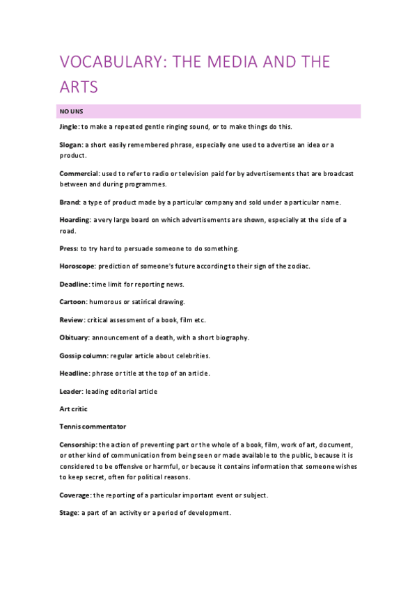 He publicado nuevos apuntes de 1º Primera Lengua Extranjera I: Inglés: Vocabulary-The-Media-and-the-Arts.pdf