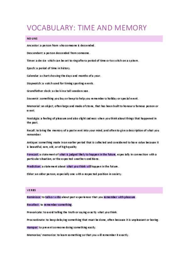He publicado nuevos apuntes de 1º Primera Lengua Extranjera I: Inglés: VOCABULARY-time-and-memory.pdf