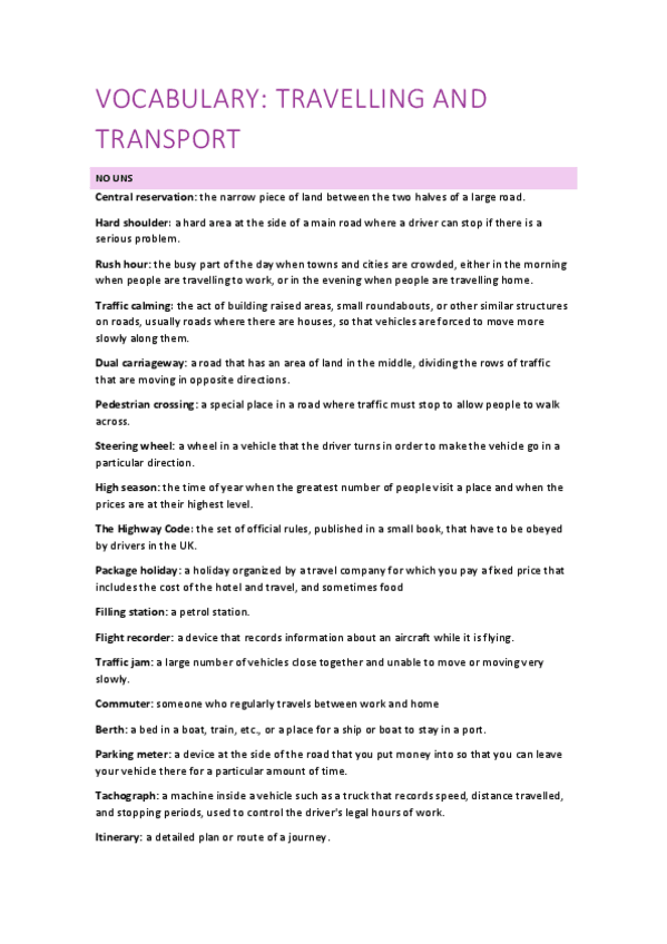 He publicado nuevos apuntes de 1º Primera Lengua Extranjera I: Inglés: VOCABULARY-TRAVELLING-AND-TRANSPORT.pdf