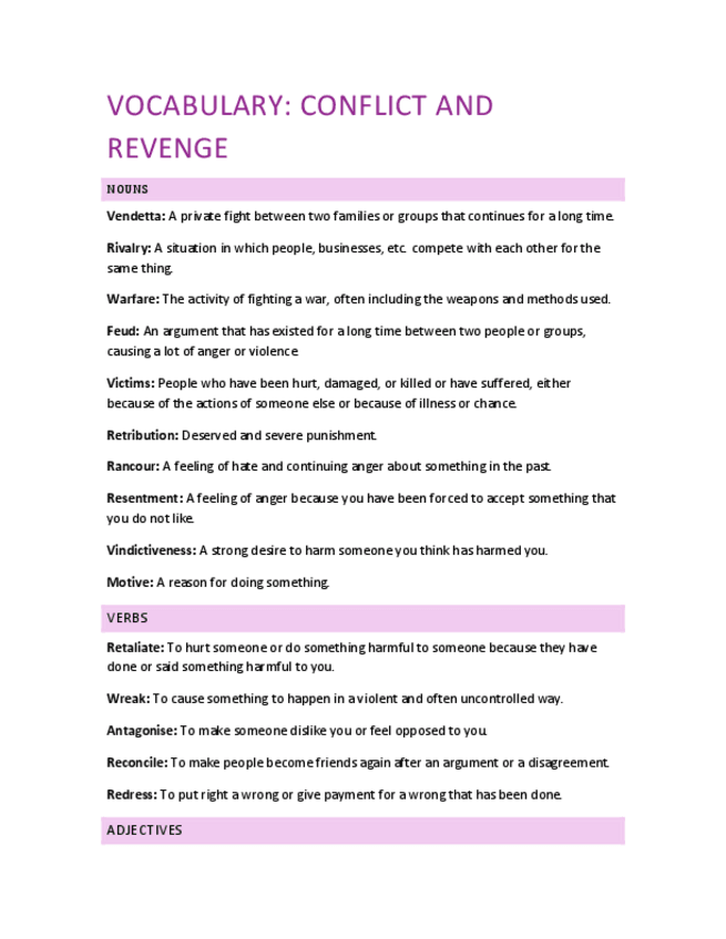 He publicado nuevos apuntes de 1º Primera Lengua Extranjera I: Inglés: VOCABULARY-conflict-and-revenge.pdf