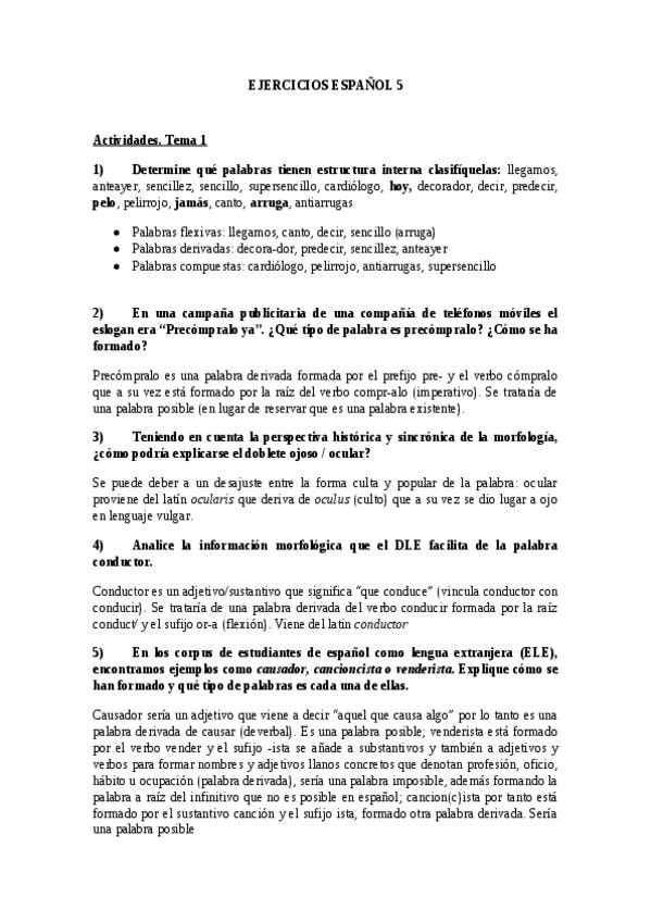 Apuntes y ejercicios español