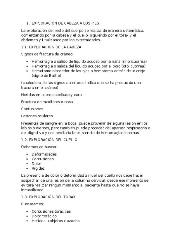 En este documento vamos a poder encontrar la exploración de cabeza a pies, la RCP en adultos, niños y lactantes; la valoración OPUMA, las prioridades de actuación, la PLS (Posición Lateral de Seguridad) y la desfibrilación