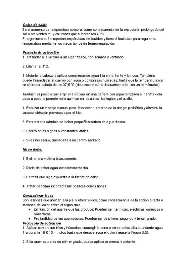 Protocolos de actuación de golpe de calor, quemaduras leves e hipotermia.