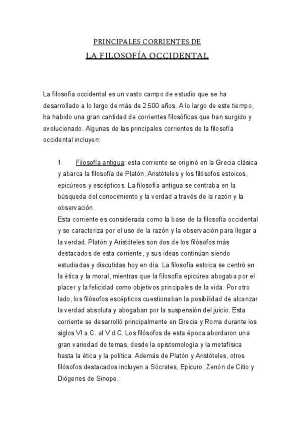 PRINCIPALES CORRIENTES DE LA FILOSOFÍA OCCIDENTAL