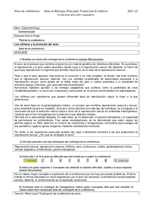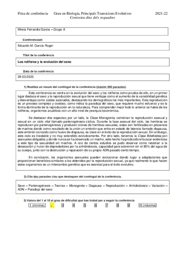 He publicado nuevos trabajos de 3º Principales Transiciones Evolutivas: Ficha conferencia rotíferos.pdf